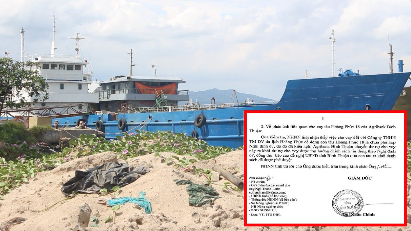 Do đó, Ngân hàng Nhà nước tỉnh kiến nghị Agribank Bình Thuận chuyển dư nợ cho vay này ra khỏi dư nợ cho vay được thụ hưởng chính sách tín dụng theo Nghị định 67. Đồng thời, báo cáo đề nghị UBND tỉnh Bình Thuận đưa tàu Hoàng Phúc 18 khỏi danh sách được phê duyệt".