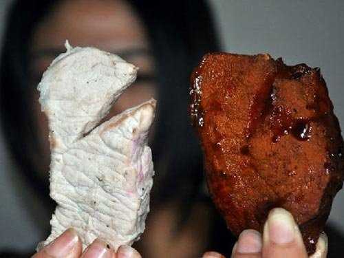 Công nghệ hô biến thịt lợn thành thịt bò rất đơn giản, chỉ cần dùng phẩm mầu “hoa hiên” là có thể không phân biệt được về mầu sắc đâu là thịt lợn, đâu là thịt trâu, bò.