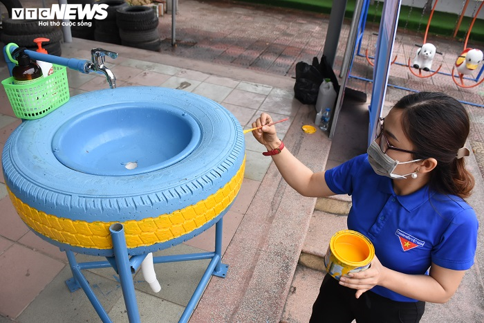 Cũng theo anh Vũ Hải Sơn, để tạo nên những chiếc bồn rửa tay màu sắc, thu hút thị hiếu của người dân nhưng vẫn đảm bảo tiêu chí vệ sinh, sát khuẩn tay an toàn, các đoàn viên tự tay sơn sửa, trang trí. Mỗi bồn rửa tay đều được trang bị xà phòng và dung dịch rửa tay khô.