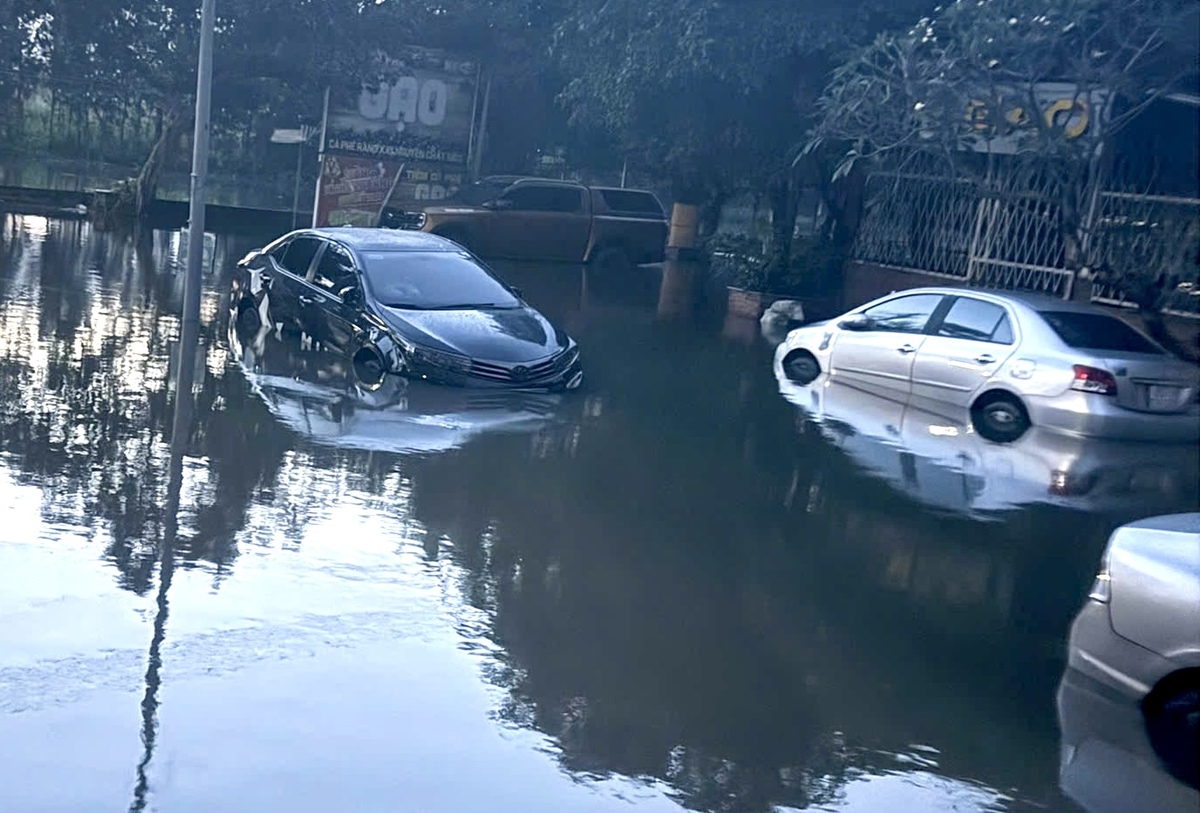 Trong nhiều khu dân cư, triều cường dâng cao khiến ô tô ngập nặng.