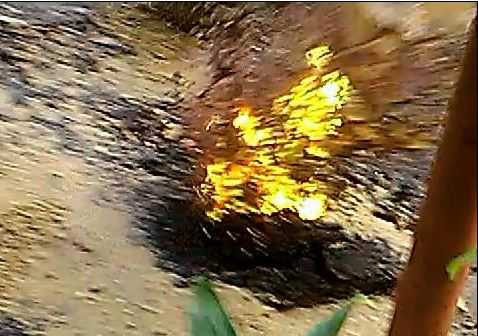 Sau khi phát nổ, bên trong miệng hố phun lửa giống như một miệng núi lửa nhỏ đang phun trào