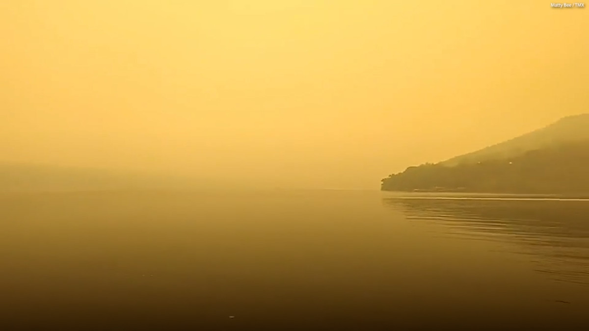 Hồ Keula ở New York đã bị bao phủ trong màn khói màu cam dày đặc, nguyên nhân từ hàng trăm đám cháy rừng bùng phát ở phía bắc Quebec.