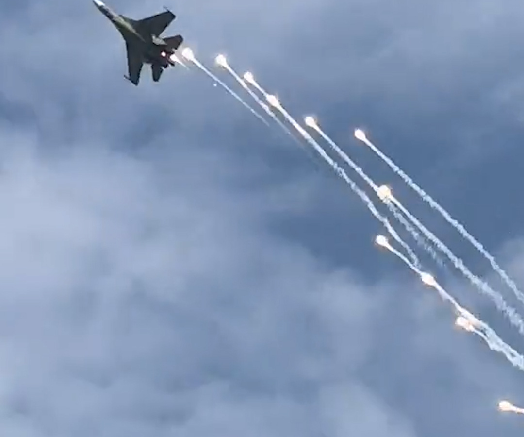 'Hổ mang chúa' Su30MK2 thả bẫy nhiệt trên bầu trời Hà Nội