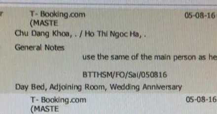 Thông tin về việc đặt phòng khách sạn của Hồ Ngọc Hà và đại gia Chu Đăng Khoa cũng được tiết lộ.