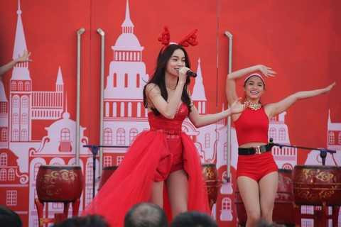 | Màn trình diễn ấn tượng của Hồ Ngọc Hà trong Lễ khai trương. Đây là không phải là lần đầu tiên Ngôi sao ca nhạc “hot” nhất V-biz này góp mặt tại các sự kiện khai trương của Tập đoàn Vingroup |