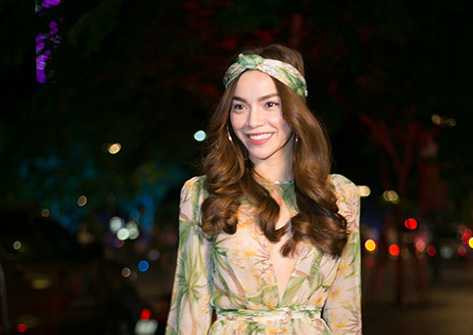| Hồ Ngọc Hà đẹp tựa nàng thơ khi tới dự Tuần lễ Nhà thiết kế thời trang Việt Nam Xuân/Hè 2016. "Nữ hoàng giải trí" mặc váy lụa mang phong cách nhiệt đới của NTK Katy Nguyễn. Cô khéo léo phối bộ trang phục với khăn Turban. |