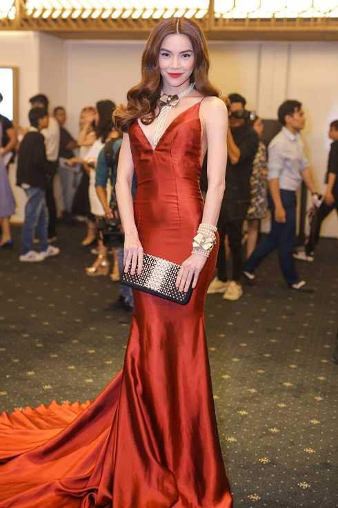 | "Nữ hoàng giải trí" diện váy đỏ rực may từ chất liệu lụa trong đêm trao giải Elle Style diễn ra tối 5/10 tại TP HCM. Bộ trang phục giúp cô khoe được những đường cong gợi cảm, đôi chân dài, vòng 1 gợi cảm và lưng trần nuột nà. |