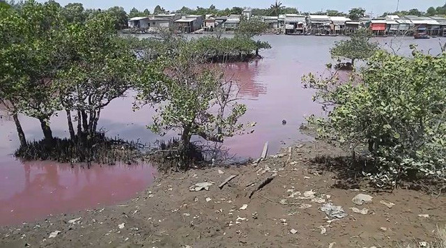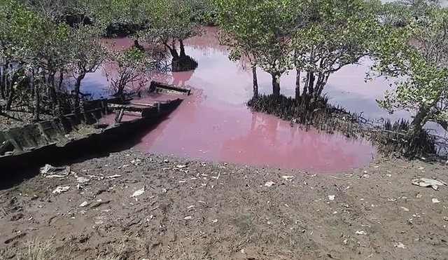 Ngày 27/3, người dân tại thôn Cát Hải, xã Tân Hải, huyện Tân Thành (tỉnh Bà Rịa - Vũng Tàu) phản ánh đến các cơ quan báo chí về tình trạng nước chuyển thành màu hồng tím, bốc mùi hôi thối tại khu vực hồ chứa nước của cống số 6, nơi một số nhà máy chế biến hải sản vẫn đang hoạt động.