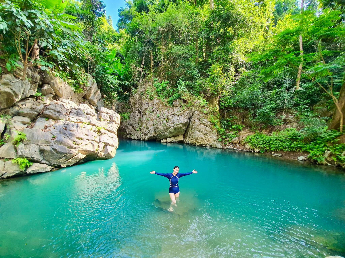 Bên cạnh việc thỏa sức đắm chìm với làn nước trong lành ở hồ Ma Đa, du khách có thể tiếp tục chuyến hành trình băng rừng, vượt qua những mỏm núi đá để đến với hang Trạ Ang - một trong những điểm dừng chân tuyệt đẹp ở Vườn quốc gia Phong Nha - Kẻ Bàng.