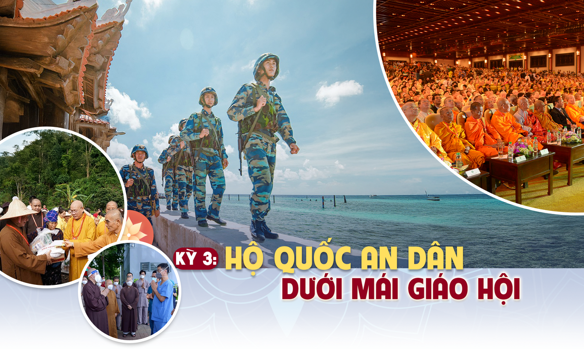 Không chỉ hiện diện nơi đất liền, tinh thần "Hộ quốc" còn vươn xa tới tận nơi đầu sóng ngọn gió. Buổi sớm trên đảo Trường Sa Lớn, tiếng chuông chùa vang lên ngân dài giữa biển khơi, hòa cùng tiếng sóng bạc đầu vỗ vào mạn đá. Âm thanh ấy - vừa thiêng liêng vừa gần gũi - như nối liền đất liền với biển đảo, kết nối tâm linh của hàng triệu người Việt hướng về nơi đầu sóng ngọn gió của Tổ quốc.