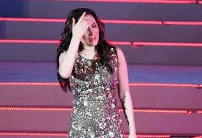 | Hồ Quỳnh Hương khóc nức nở mong khán giả Hạ Long thứ lỗi. |