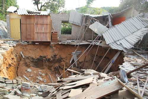 Hiện tượng sụt lún đất, tạo hố sâu khiến 7 ngôi nhà tại đây bị nứt tường và chân móng đe dọa tính mạng tài sản của các hộ dân bên cạnh. Các hố sụt lún đều nằm sát nhà dân và trong vườn nhà dân, miệng hố sụt lún rộng nhất cũng hơn 10 mét, sâu chừng 3-4 mét.