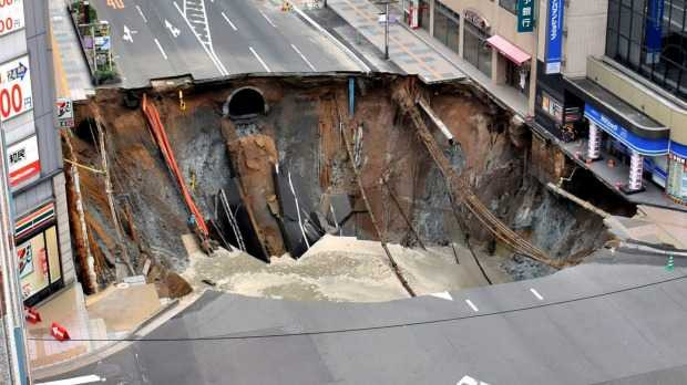 Chiếc hố khổng lồ xuất hiện gần một công trường xây dựng tàu điện ngầm. Các nhà chức trách hiện đang tiến hành điều tra xem hoạt động của công trường này có liên quan gì đến sự cố hay không.