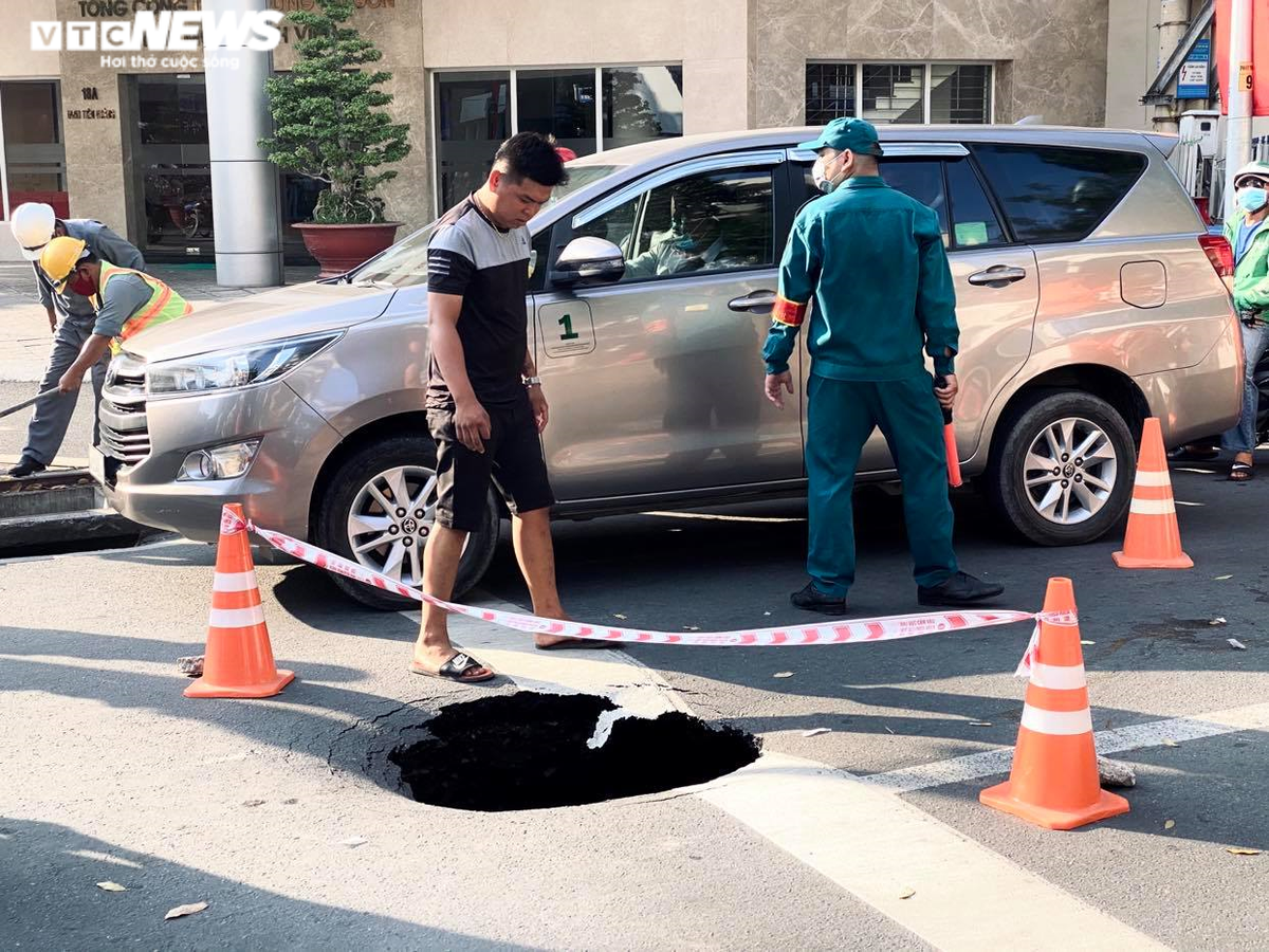Khoảng 15h ngày 25/8, người đi đường giật mình khi một phần mặt đường giữa giao lộ Nguyễn Đình Chiểu - Đinh Tiên Hoàng (phường Đa Kao, Quận 1, TP.HCM) bất ngờ bị sụt xuống, tạo thành hố sâu.