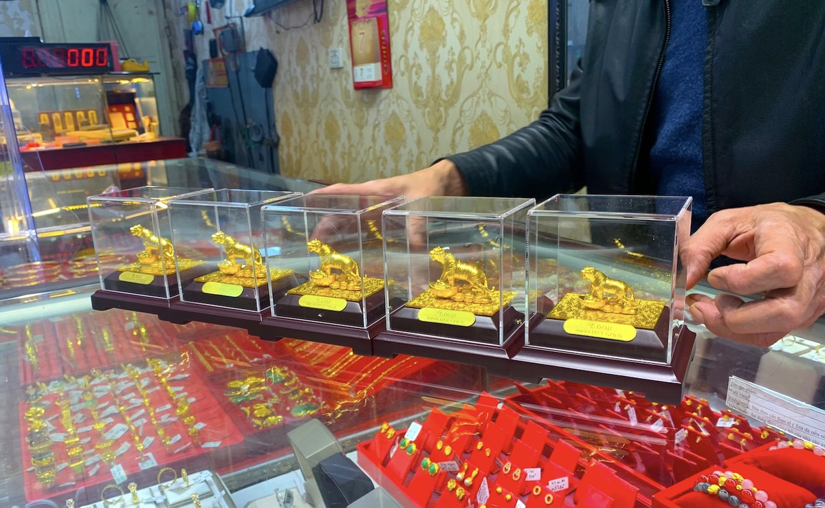 Tại Công ty Cổ phần Vàng bạc đá quý Asean, ngoài sản phẩm vàng trang sức, đá quý, những đồng vàng linh vật khắc nổi hình hổ cũng được ào ạt tung ra để người mua thoải mái lựa chọn.