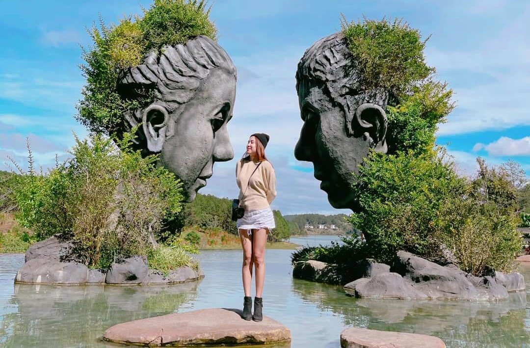 Nét độc đáo của hồ Vô Cực khiến khách du lịch đứng ngồi không yên, đặc biệt là team mê sống ảo. Chỉ với một tiểu cảnh ở đây thôi cũng đã đủ cho bạn thỏa sức chụp mọi góc với đủ kiểu dáng. Với khung cảnh đất trời nên thơ, được tô điểm bởi hai bức tượng khổng lồ độc đáo, hồ Vô Cực đẹp từ mọi góc nhìn và thường xuất hiện trong hình ảnh, video giới thiệu Đà Lạt. Có thể nói nơi đây chính là một trong các biểu tượng đặc biệt mà chỉ cần nhìn thấy sẽ nghĩ ngay đến Đà Lạt.
