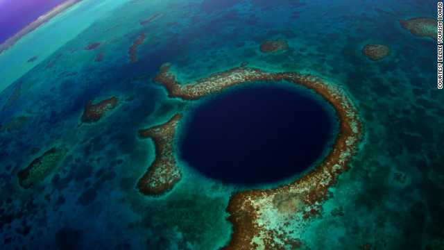 | Hố xanh khổng lồ trên vùng biển ngoài khơi quốc gia Trung Mỹ Belize. |