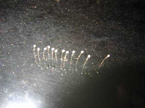 Theo chị Lê Thị Lý, số nhà 6 đường Nguyễn Chích, phường Nam Ngạn, TP Thanh Hoá, khi đang đóng cửa về quê nghỉ lễ 30/4, chị phát hiện một đám hoa trắng li ti trên cửa kính.
