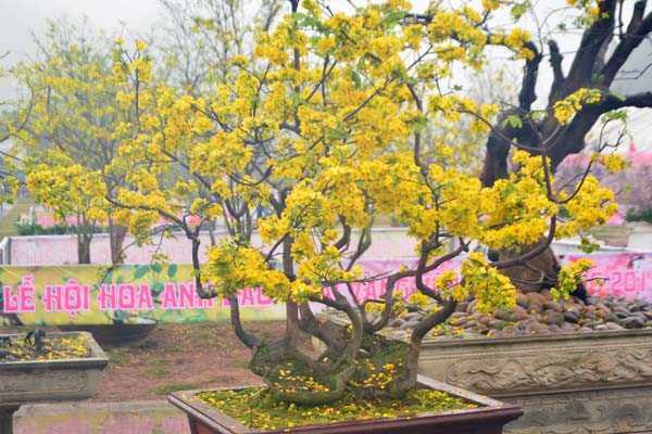 Nhiều cây mai vàng có thế lạ, đẹp mắt góp mặt trong lễ hội. (Ảnh: Khải Phong)
