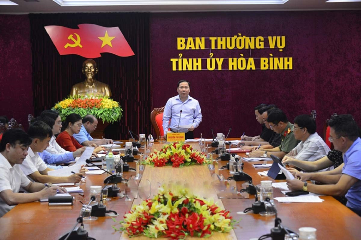 Đồng chí Nguyễn Phi Long, Ủy viên dự khuyết BCH Trung ương Đảng, Bí thư Tỉnh ủy, Trưởng BCĐ chủ trì cuộc họp Ban Chỉ đạo phòng, chống tham nhũng, tiêu cực tỉnh. (Ảnh Báo Hòa Bình).
