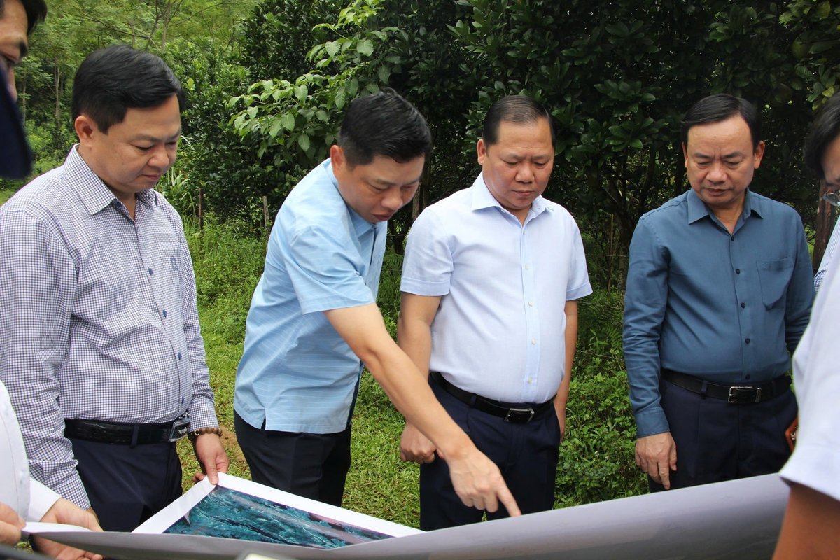 Đồng chí Nguyễn Phi Long, Ủy viên dự khuyết BCH T.Ư Đảng, Bí thư Tỉnh ủy và đoàn công tác tại cơ sở. (Ảnh: Báo Hoà Bình).