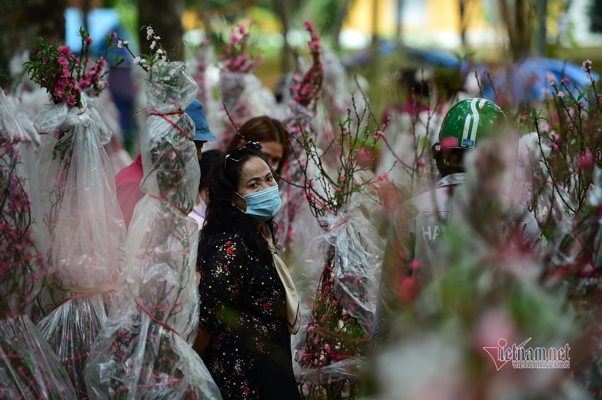 | Anh Phước, quê Hưng Yên, mỗi ngày bán được 60 cây đào do anh giảm giá bán từ 1.000.000 đồng xuống còn 700.000 đồng/cây. "Vậy mà người ta còn chê đắt, năm nay bán ít hơn mọi năm do dịch", anh Phước nói. |