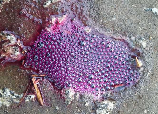 | Cả đoạn đường biến thành màu tím khi tiếp xúc với nước- Ảnh Ngọc Tài |