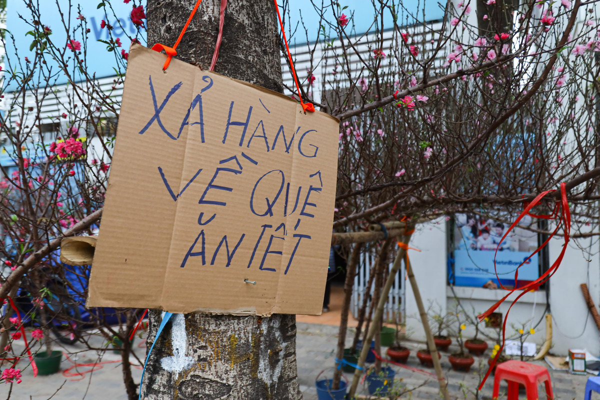 Sáng 29/1 (tức 29 Tết), trên nhiều tuyến phố Hà Nội như Tố Hữu (quận Hà Đông), Lạc Long Quân (quận Tây Hồ), Hoàng Quốc Việt, Nghi Tàm, các tiểu thương đang giảm giá kịch sàn các mặt hàng cây cảnh Tết như đào cành, quất cảnh, nhất chi mai, mai vàng, để nhanh chóng dọn dẹp về quê ăn Tết sớm. Bên cạnh đó nhiều tiểu thương lại tự chặt bỏ những cành đào để tránh bị ép giá.