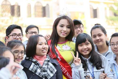 Có mặt tại trường THPT chuyên Lê Hồng Phong với tư cách là cựu học sinh khối chuyên Pháp, Kỳ Duyên được hàng trăm thầy cô và các em học sinh chào đón nồng nhiệt.