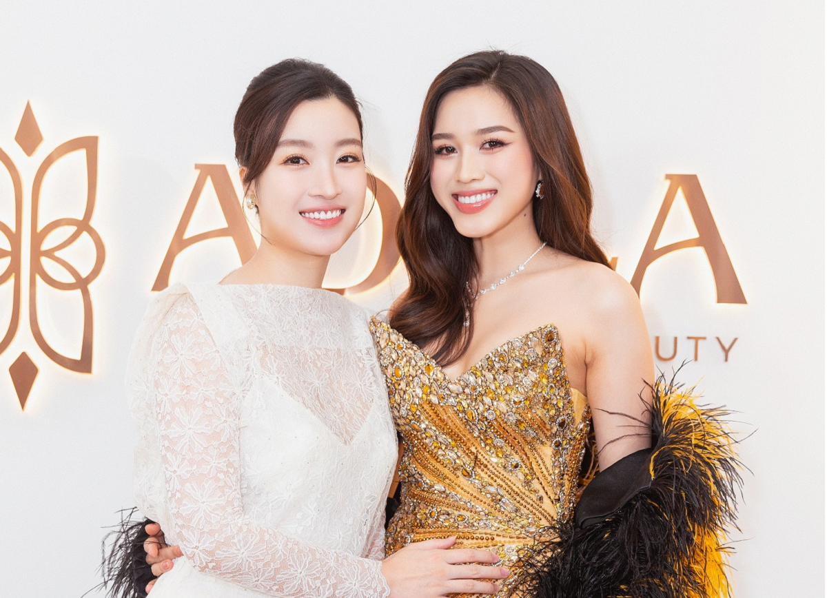 Xuất hiện tại sự kiện, Hoa hậu Đỗ Mỹ Linh lựa chọn chiếc đầm ren dáng dài vừa kín đáo vừa thanh lịch để chúc mừng "đàn em".