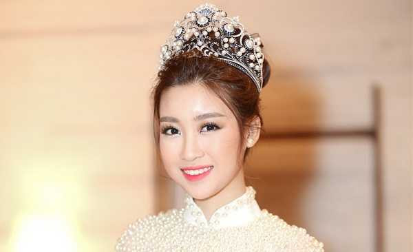 Trong buổi bế mạc Lễ hội áo dài tại một trung tâm hội nghị ở TP.HCM, Hoa hậu Đỗ Mỹ Linh khiến mọi người không thể rời mắt khi xuất hiện trong trang phục áo dài được thiết kế công phu với những hạt ngọc trai đính trên thân áo, kết hợp cùng áo choàng có đính lông vũ.