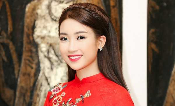 Hoa hậu Việt Nam 2016 Đỗ Mỹ Linh chọn áo dài chất liệu gấm đỏ, điểm xuyết những hoa tiết thêu nổi để dự Khai mặc Lễ hội áo dài tại phố đi bộ Nguyễn Huệ - TP. HCM. Năm nay, cô cũng là đại sứ của chương trình nhằm quảng bá và tôn vinh áo dài truyền thống cùng vẻ đẹp của người phụ nữ Việt.