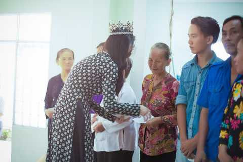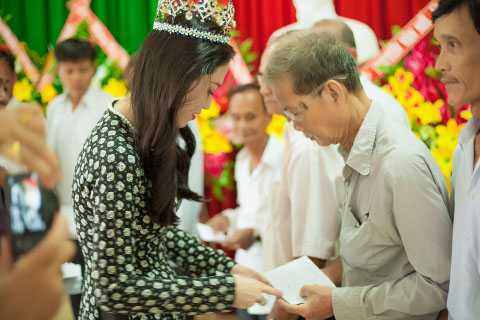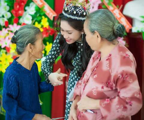 Nhân dịp tháng tri ân, Hoa hậu đông Nam Á 2014 Triều Thu đã về Tiền Giang để thăm hỏi, tặng quà mẹ Việt Nam Anh hùng và gia đình chính sách.