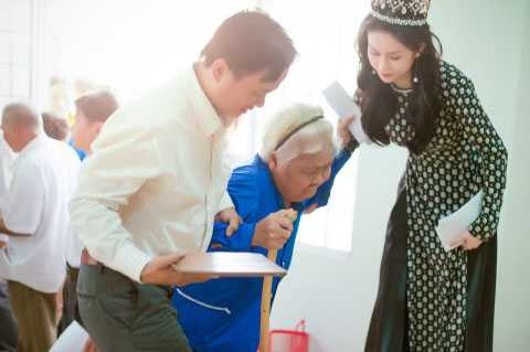 | Hoa hậu Đông Nam Á Triều Thu xúc động bên các mẹ Việt Nam anh hùng, những người đã sinh ra cho dân tộc những người con ưu tú. |