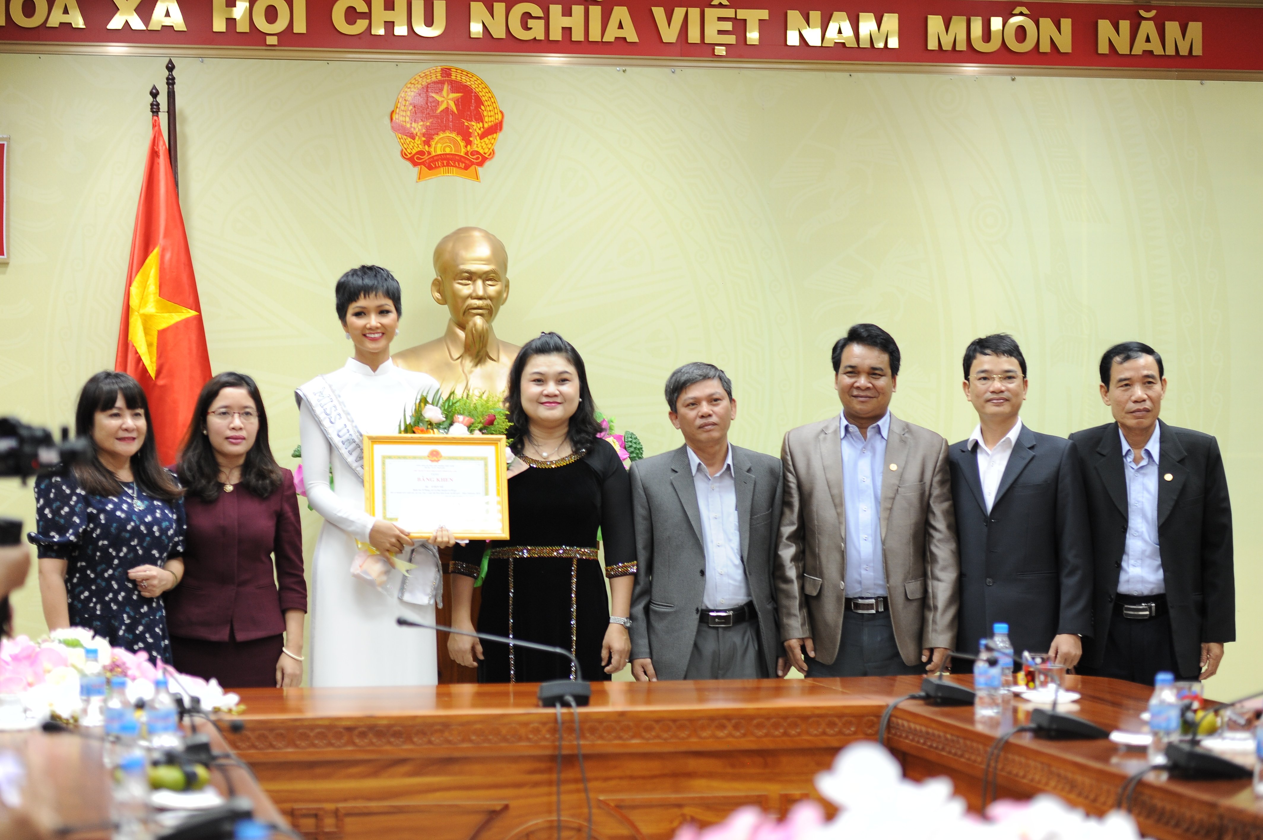 Hoa hậu H'Hen Niê nhận bằng khen từ ban lãnh đạo tỉnh.