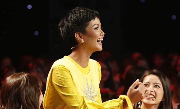 Mặc kệ sự hoảng hốt của các chị em xung quanh, H’hen Niê phấn khích trước ngoại hình lẫn thần thái tỏa ra từ quý ông này. Không những thế, cô còn nhiều lần cao hứng chạy lên tặng hoa và ôm chầm lấy các nam thí sinh không chút ngại ngùng.