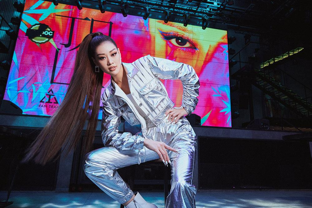 Hoa hậu Khánh Vân xuất hiện nổi bật với trang phục màu ánh bạc, áo siết eo kết hợp áo khoác cá tính cùng đôi boot mũi nhọn. Khác với phong cách nữ tính thường thấy, Khánh Vân chọn hình ảnh năng động, hiện đại, mái tóc cột cao đuôi ngựa để tiếp thêm sức mạnh cho các người mẫu trẻ đến tham dự buổi casting.