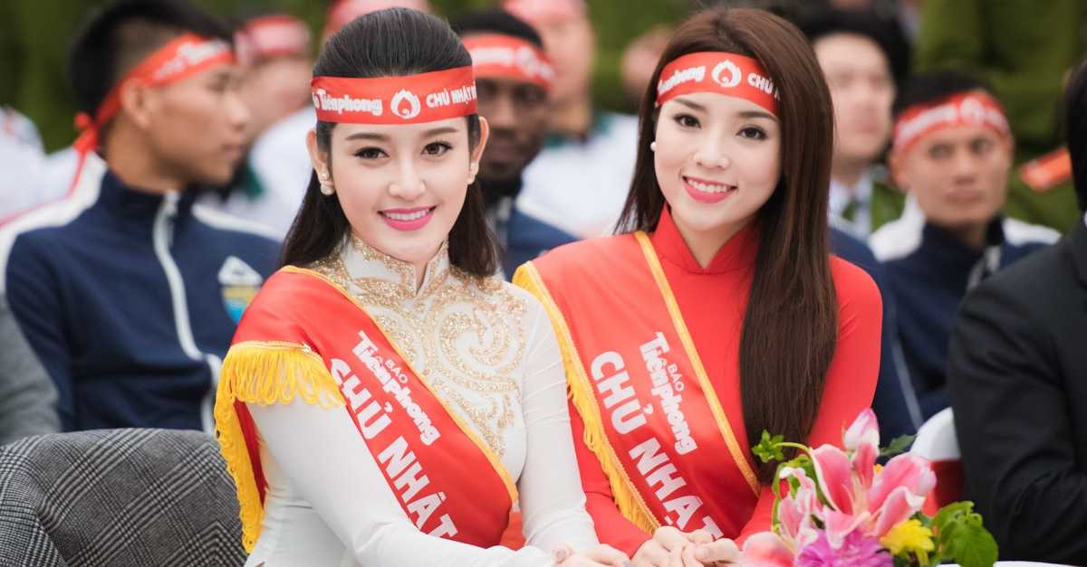 Sáng 17/1, Hoa hậu Kỳ Duyên và Á hậu Huyền My đã nhiệt tình tham gia chương trình 'Ngày chủ nhật đỏ' lần thứ 8 do báo Tiền hong tổ chức, tại trường Đại học Bách Khoa Hà Nội.