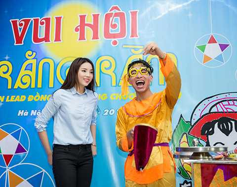 Sáng qua ngày 19/9, hoa hậu Việt Nam 2014 - Nguyễn Cao Kỳ Duyên cùng với mẹ của mình đã đến tham dự chương trình "Vui hội trăng rằm" cùng với các em nhỏ đang điều trị bệnh tại Bệnh viện K Trung ương Hà Nội.