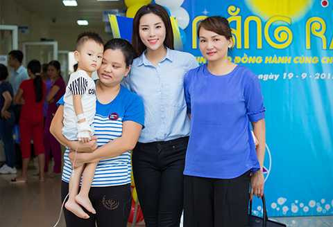 | Hoa hậu Kỳ Duyên cùng mẹ của mình đã tới tận giường bệnh của từng em nhỏ để tặng quà và chia sẻ hoàn cảnh của những em nhỏ đang mang trong mình căn bệnh quái ác. |