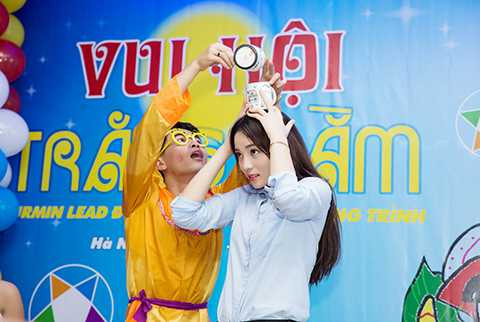 | Cô đã nhiệt tình tham gia các trò chơi và khuấy động chương trình cùng nam MC hài hước. |