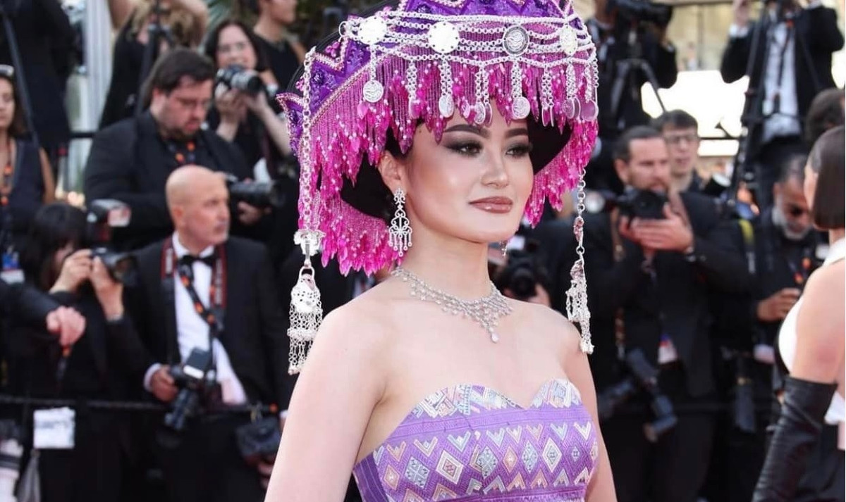 Buổi công chiếu Asteroid City, thuộc khuôn khổ Liên hoan phim Cannes lần thứ 76, diễn ra ngày 23/5 (giờ Pháp). Chưa rõ người đẹp Lào Payengxa Lor tham dự theo diện nào, song cô thành công trong việc thu hút truyền thông quốc tế với bộ trang phục ấn tượng khi đến Cannes lần đầu tiên. Ảnh: Pageantry News International.