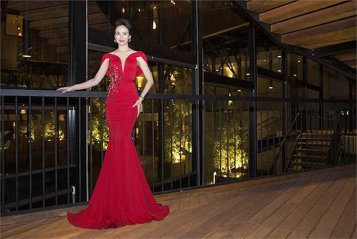 Trong sự kiện diễn ra tối qua (24/1), ngoài chiếc áo dài sắc xuân rực rỡ, cô diện một chiếc đầm khá bắt mắt.