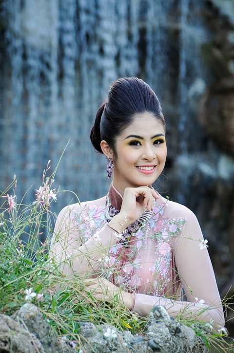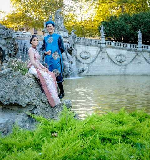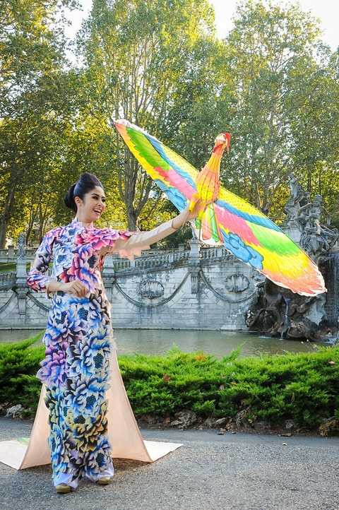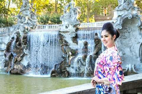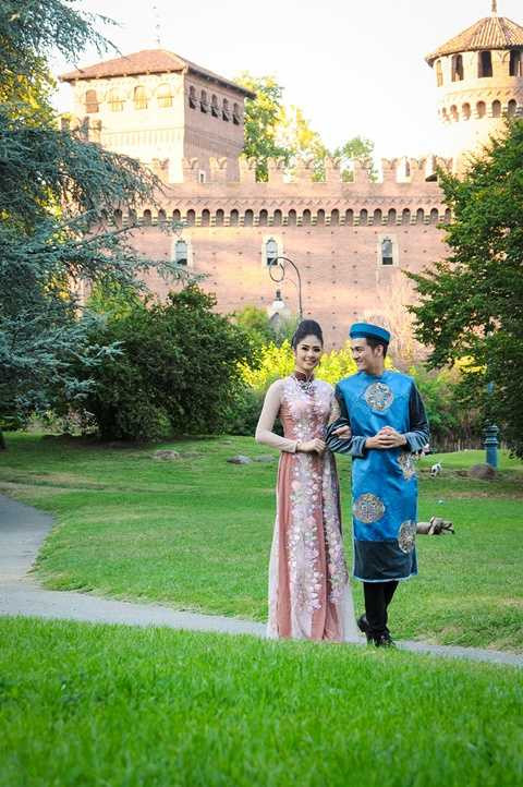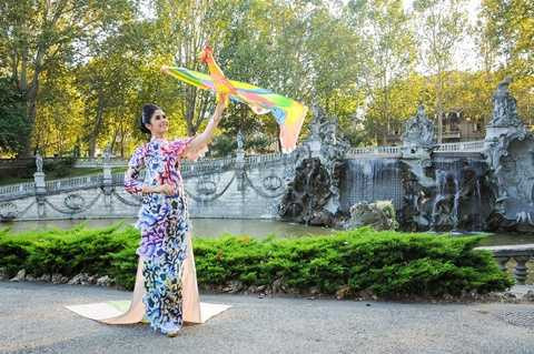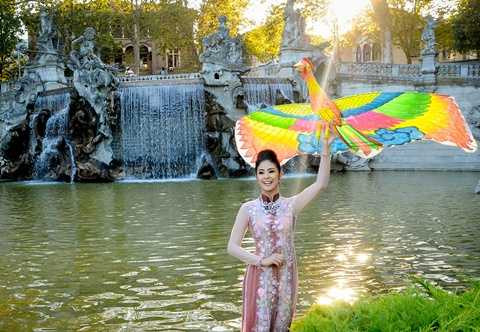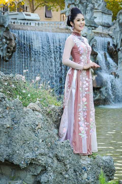 | Tròn Tuần Việt Nam tại Torino, Ngọc Hân đã tham gia trình diễn các mẫu áo dài của hai nhà thiết kế Minh Hạnh và Công Khanh. |