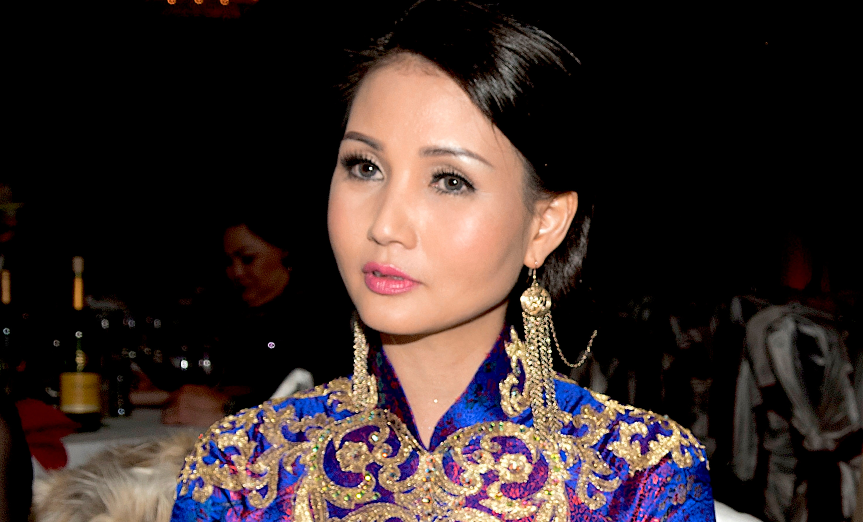Bộ áo dài của Hoa hậu được quan khách trầm trồ khen ngợi bởi sự quý phái và tôn vẻ đẹp đài các của người mặc. Hoa hậu Sương Đặng mix cùng ví cầm tay cùng chất liệu, được tô điểm bằng dải tua rua vừa điệu đà, vừa mang hơi hướng cung phi xưa.