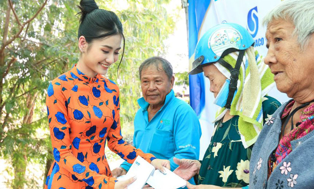 Trong dịp khánh thành cầu 3/2 tại Long An, Hoa hậu Môi trường Việt Nam 2022 Nguyễn Thanh Hà đã gặp gỡ người dân biên giới và dành tặng các món quà từ nhà tài trợ để bà con ăn Tết.