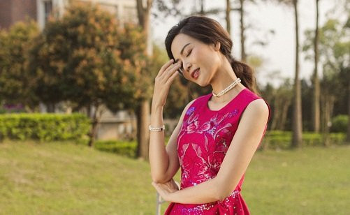 Hoa hậu Thu Thủy mơ màng trong không gian yên tĩnh của khu biệt thự sang trọng.