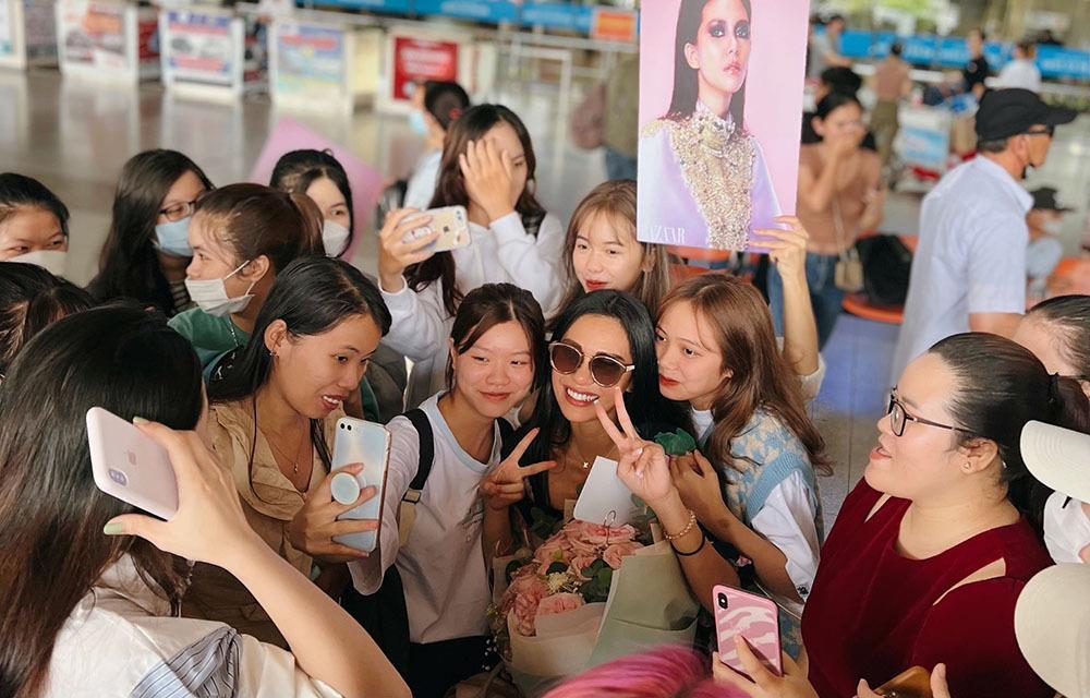 Người đẹp đến từ Philippines bất ngờ khi được các fan chào đón cùng băng rôn, hình ảnh…Cô vui mừng khi gặp lại NTK Tuyết Lê, cả hai trò chuyện thân mật và chụp ảnh cùng người hâm mộ. Với bộ cánh đơn giản là quần jean bó sát và áo cúp ngực, hoa hậu khoe vòng eo thon cùng với làn da nâu khỏe mạnh quyến rũ.