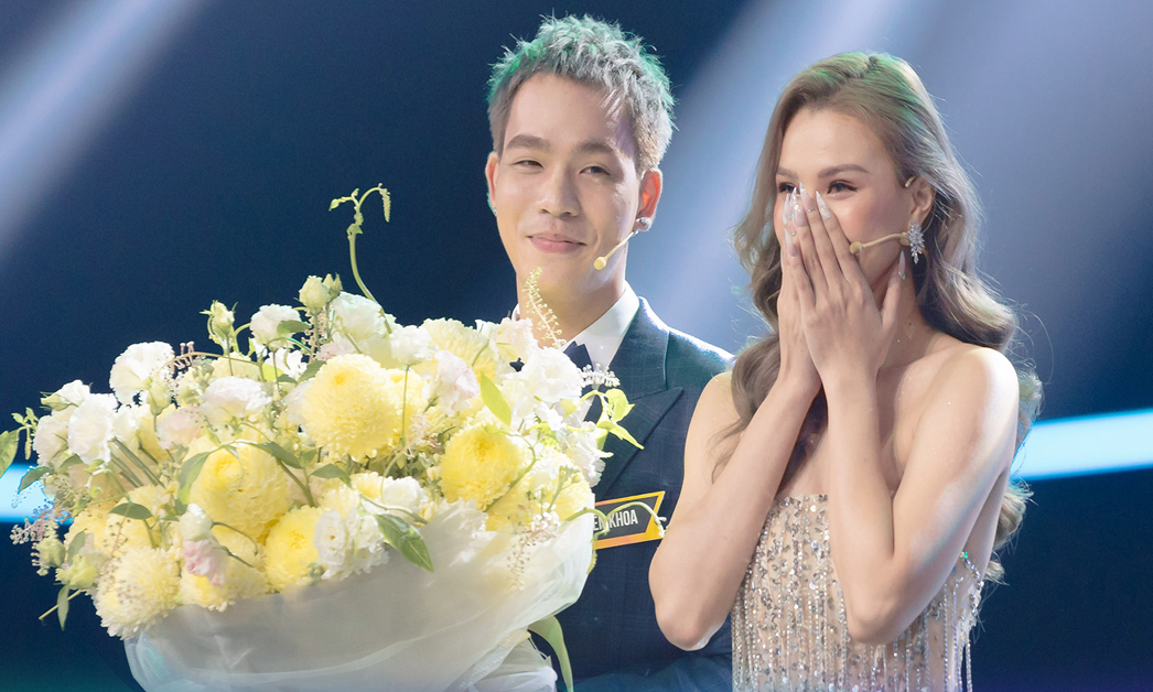 Trang Thị trao hoa cho Liên Khoa.