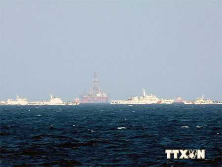 | Tàu Trung Quốc tập trung bao quanh bảo vệ khu vực giàn khoan Hải Dương-981. (Ảnh: Công Định-Hữu Trung/TTXVN). |